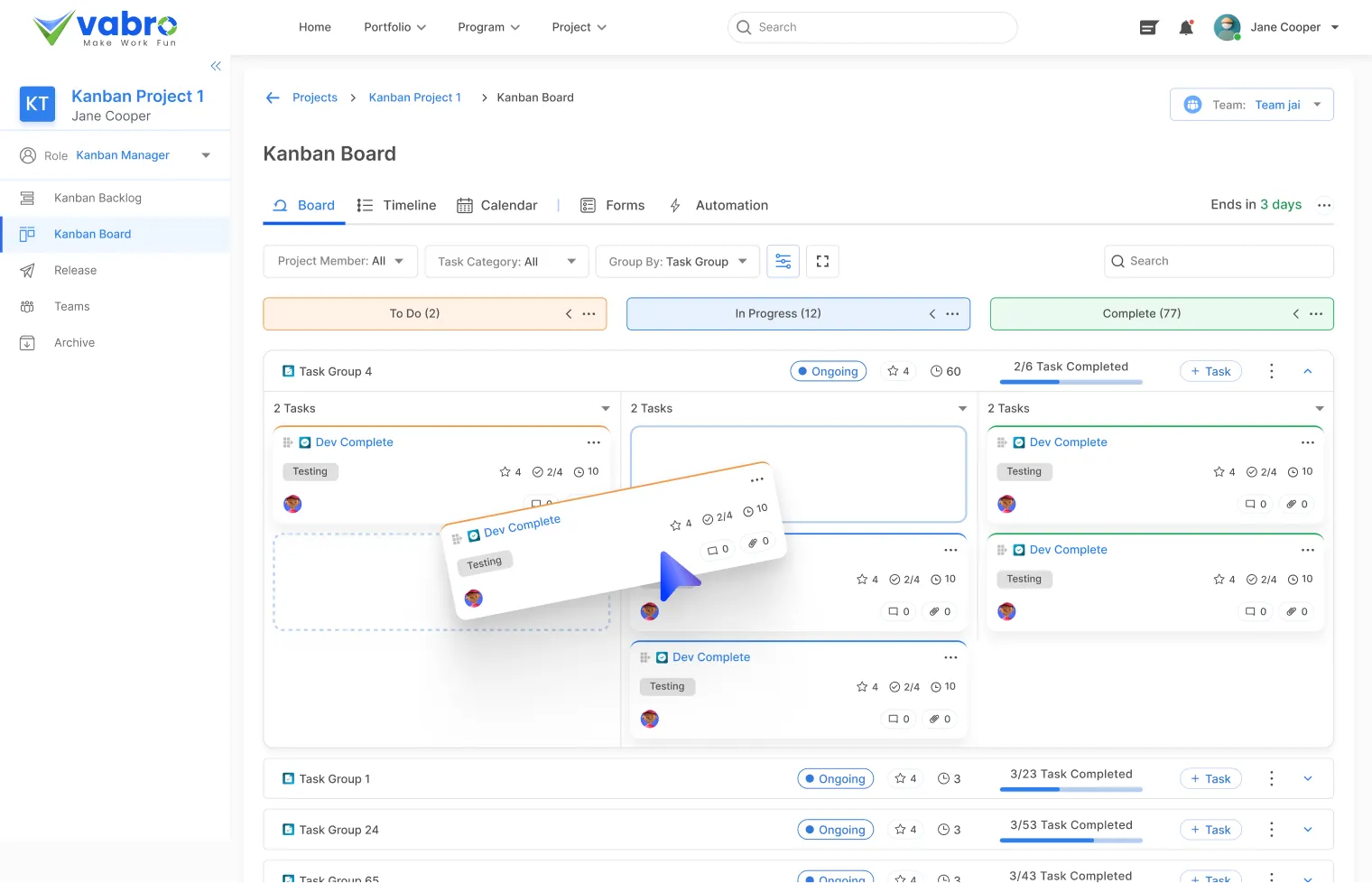 Vabro's Kanban boards offer a visual and flexible workflow management system , enabling teams to track tasks seamlessly. With customizable columns, drag-and-drop functionality, and real-time updates, teams can optimize processes, reduce bottlenecks, and maintain clear progress visibility.
