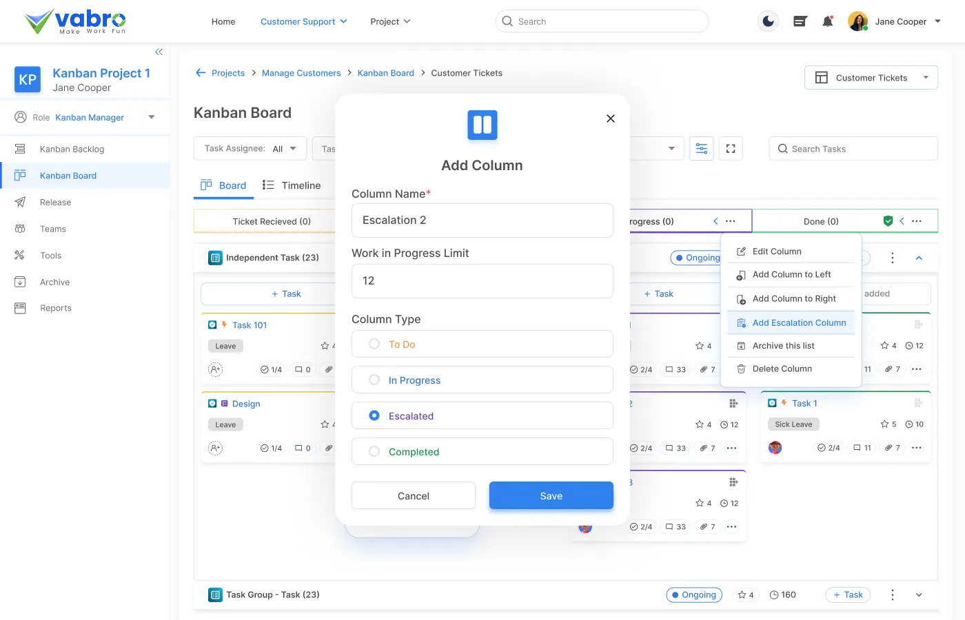 Managing Kanban Backlog feature in Vabro enables teams to organize, prioritize, and track tasks efficiently within the Kanban framework, ensuring a smooth flow of work from backlog to completion.