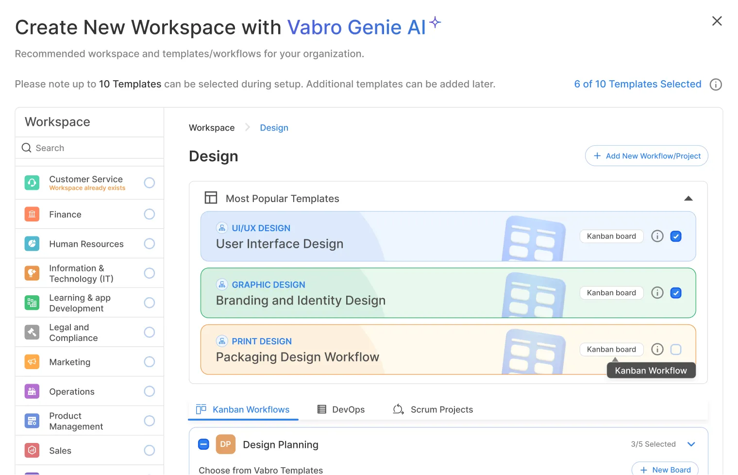 in Vabro Kanban Workflows allow you to manage tasks through various stages of completion visually. You can customize and organize workflows to match your project's needs, ensuring smooth task progression.