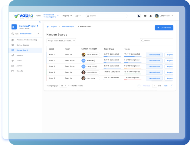 Oversee Kanban Boards and Backlogs to ensure smooth and organized workflows. Kanban Managers can set WIP limits,
