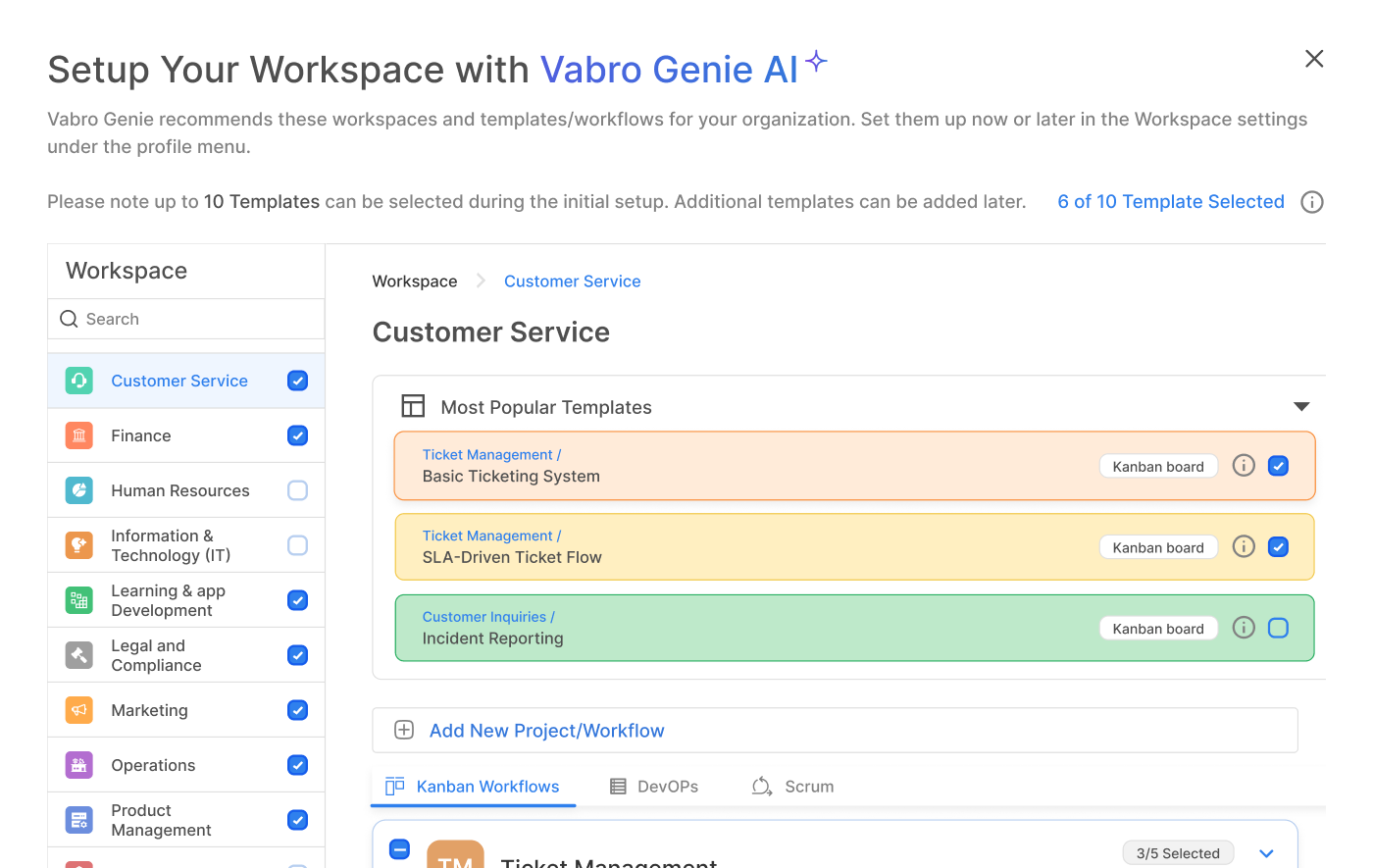 No need to start from scratch! Vabro Genie AI, powered by insights from IT professionals, offers pre-built templates to streamline your IT operations.